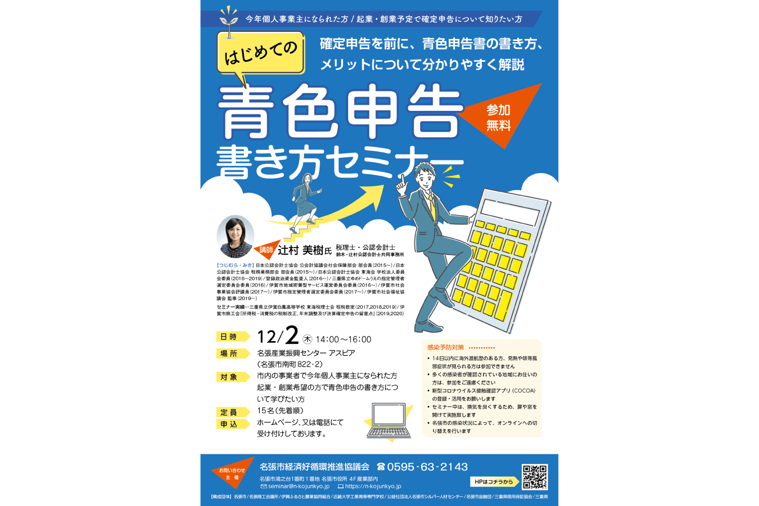 名張市「はじめての青色申告書き方セミナー」ポスター/チラシデザイン